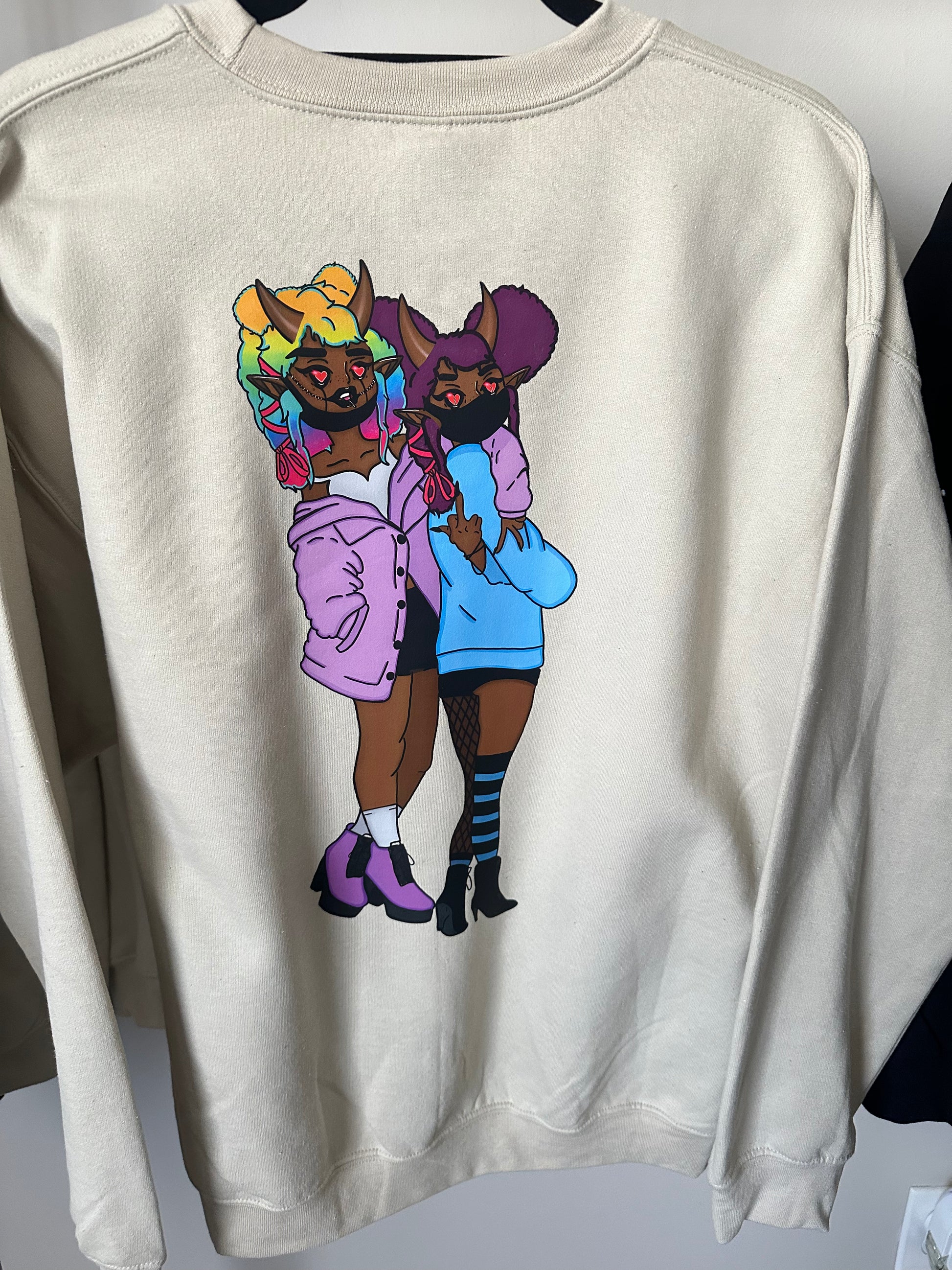 The Tionna Enchanted Crewneck ranges from XS-3X. We wanted to remain size exclusive so everyone could enjoy our crewnecks!